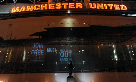 Messages such as “We want the Glazers out” were flashed on to the stand directly behind Sir Matt Busby’s statue in a move reminiscent of the time FHM magazine beamed a 100ft image of a naked Gail Porter on to the side of the Palace of Westminster. The logos of the club’s main sponsors were also projected on to the glass walls of United’s stadium, together with messages such as “Time to choose sides” and “Are you keeping the right company?”