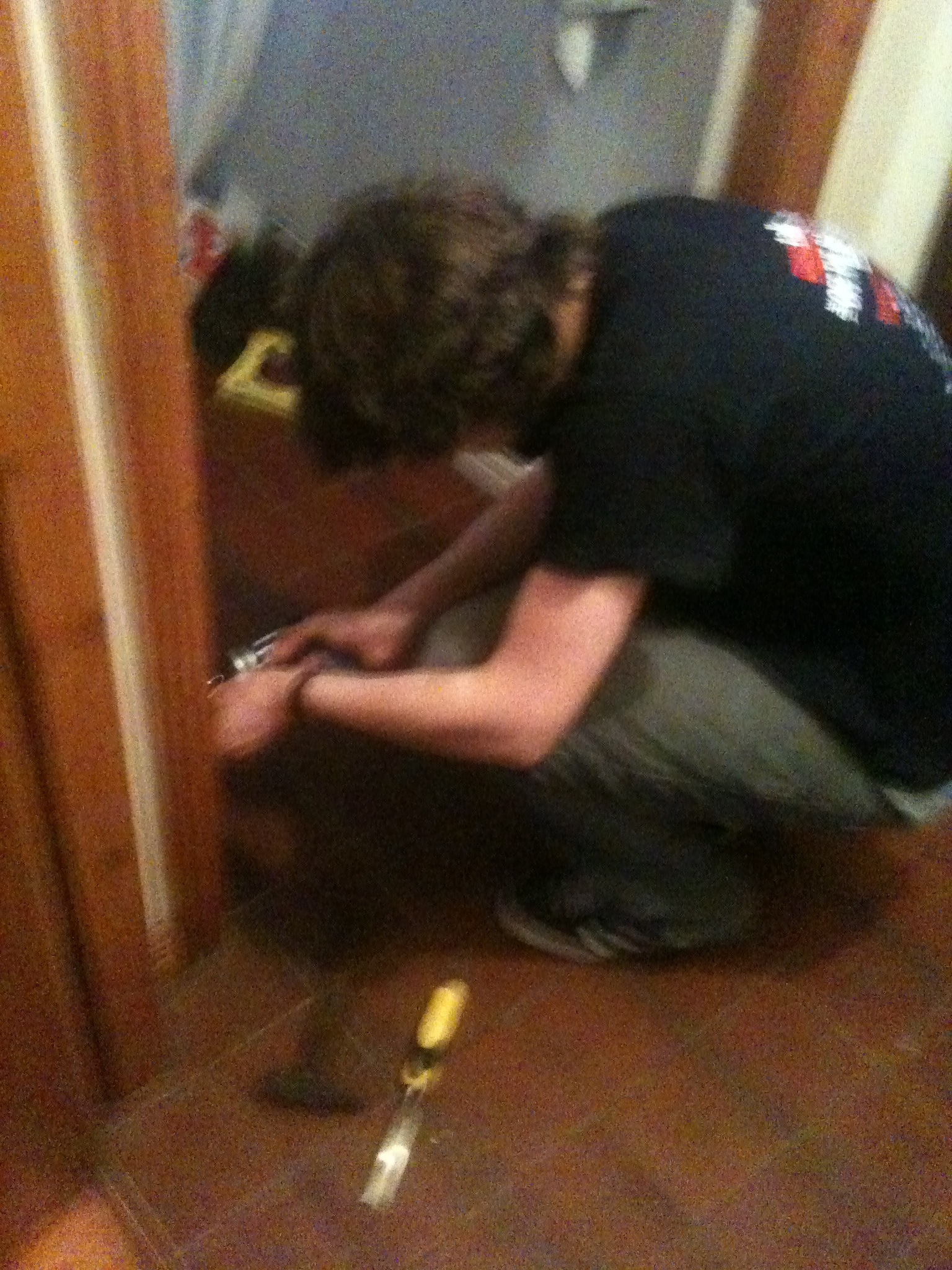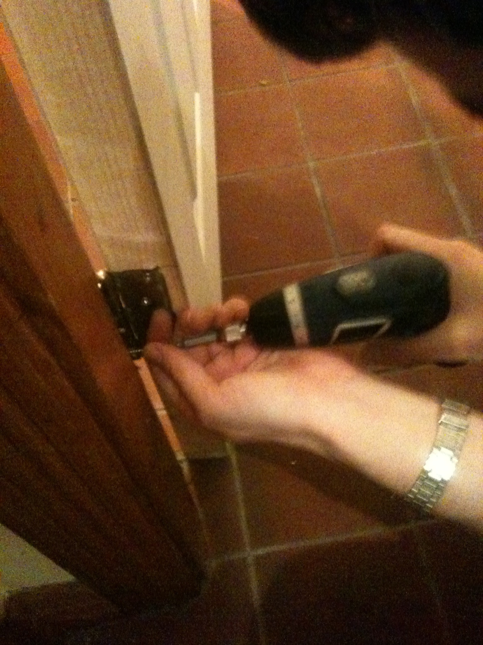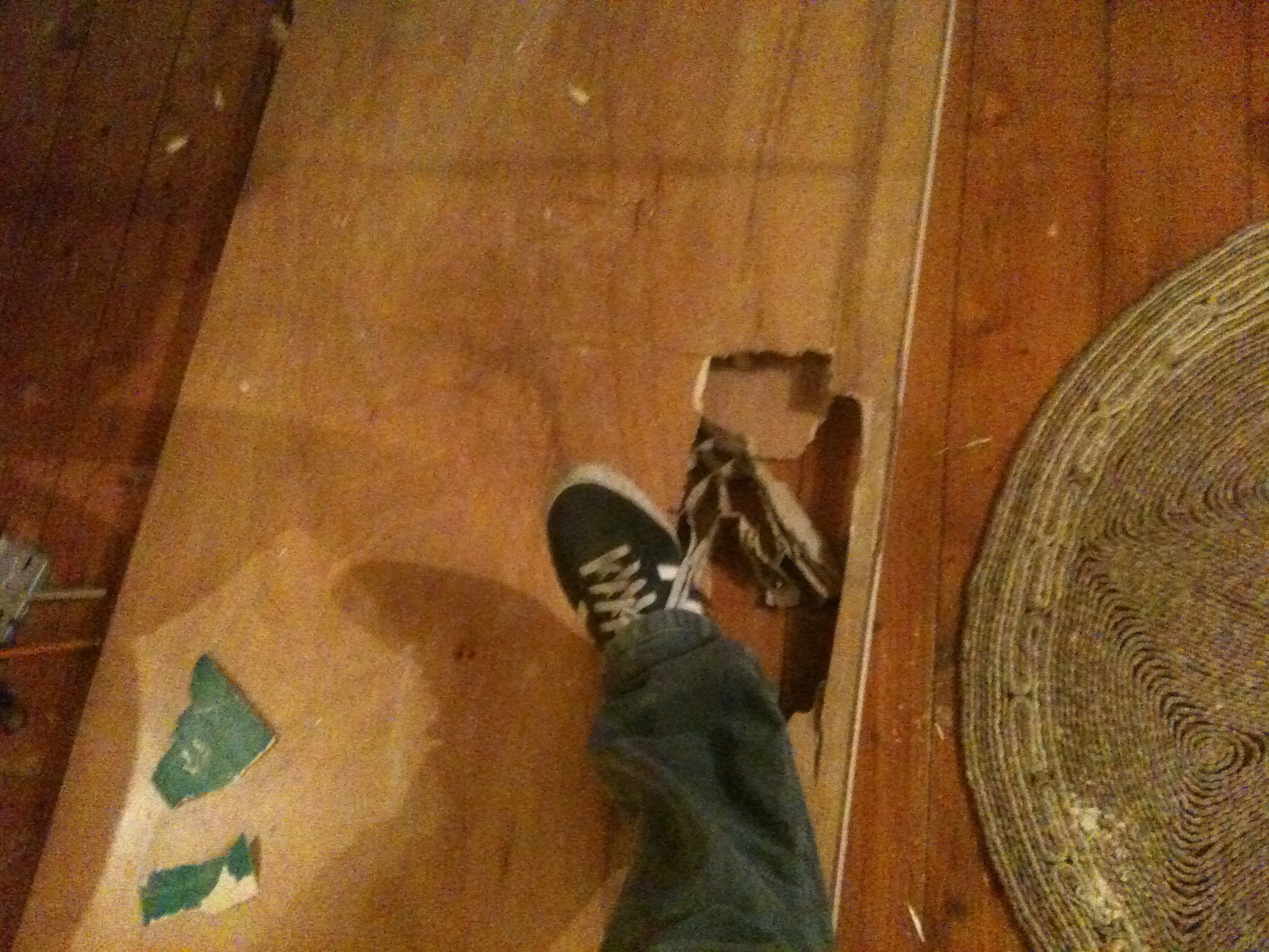 I have a week or so off from work so I’m finally getting to do those things I should have done ages ago. The main one was of course to fix the bathroom door which has for the last number of months had a large hole in it. This was the result of me locking myself into said bathroom and breaking the key in the lock, Paul Fullard who was in the house when this happened tried to force the lock but because the door was basically made of cardboard, all this managed to achieve was him getting his foot stuck in the large hole he had created. It was quite a scene with me stuck in the toilet and Paul with his foot stuck in the door. After Paul got free we set about chiseling the wood around the lock which was of course the only bit of real wood in the door. The whole process took around ninety minutes but I eventually got out and now today I’m finally putting up the new door with kind help from mister Fullard.
