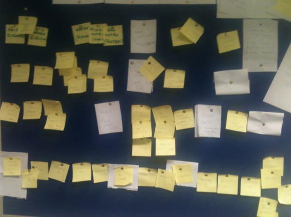 The picture above is the map of the episode I used to plan out the different scenes. The yellow notes are candidate scenes and the white ones are national story points which we used to help with the timeline and as breathers between our candidates. I took the photo with my iphone so its probably hard to read, no harm there either as my handwriting is awful.