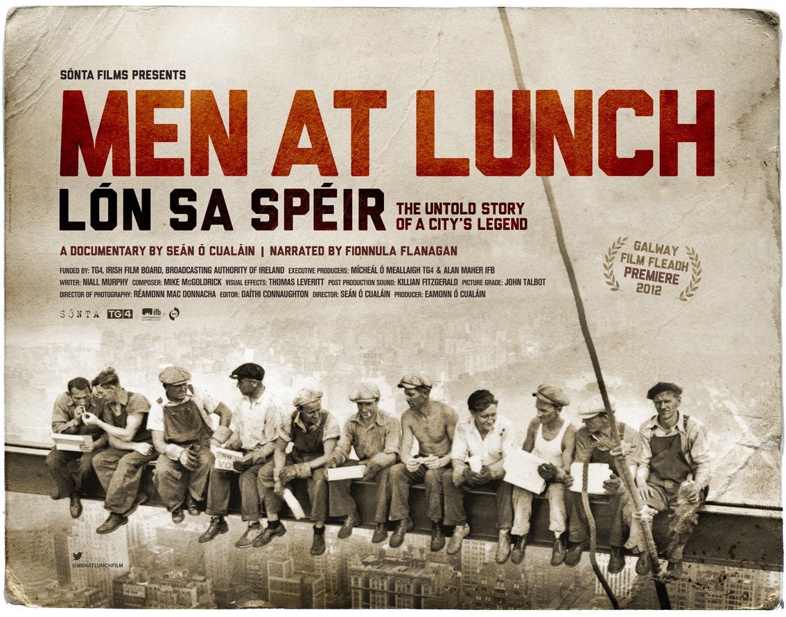 Don’t miss the oppurtunity to go and see Men at Lunch which opens in selected cinema’s across the country today. This is a cracking documentary by one of Irelands finest documentary makers Séan and Éamon O’Cualain of Sonta Films. The film examines the background to the much-copied 1932 photograph of eleven work-men seated on a girder above Manhattan, as they take a break from building the Rockefeller Center.