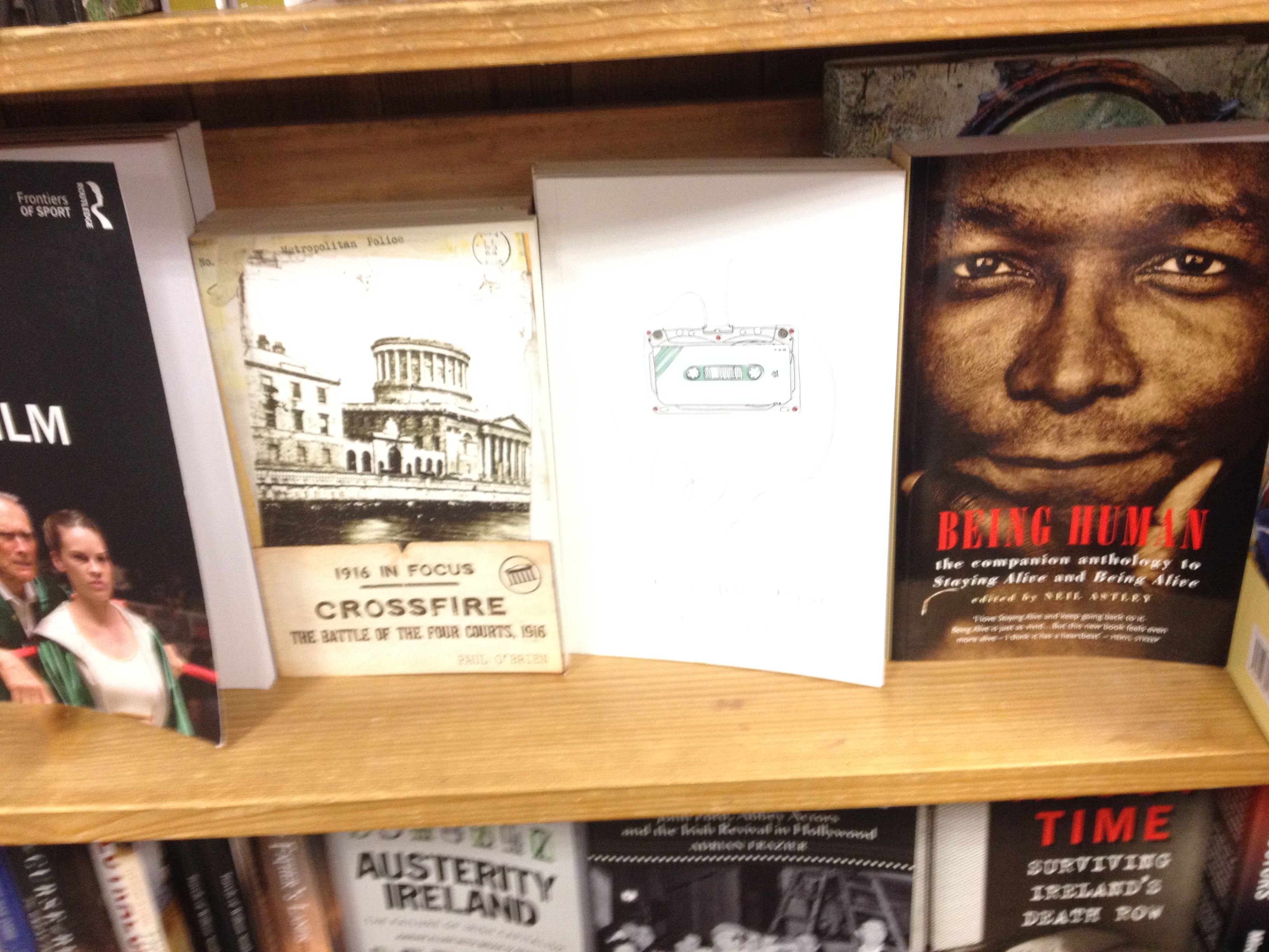 My favourite book, “Your Mixtape Unravels My Heart” by my favourite person, Máire T. Robinson is now available in my favourite bookshop, the wonderful Charlie Byrnes in Galway. This is really cool for her as we loved coming to this shop when we lived in Galway. On my way into work this morning I had to go in and snap some photo’s of it on the shelf. I was super sneaky taking the photo’s, its the white one! Very proud of the missus so I am.