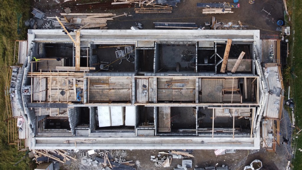WHAT’S LEFT US THEN takes a thoughtful and humorous look at the use of concrete as a building material in rural Ireland where the meeting of the bucolic with the brutalist is often contested. The film engages with the brutal beauty of concrete and the idea that we are all sliding slowly into decay, and the contradictory part that concrete plays in this slide, embodying both ruin and ecological pillage, while also providing us with a resolute and practical protection from the elements.